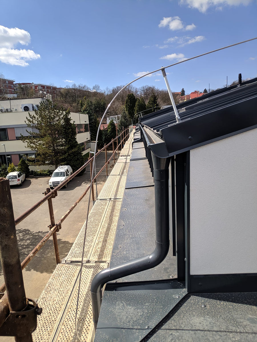 Na řadové domy v Jinonicích jsme instalovali speciální oddálený hromosvod s oddálenými jímači na anténách.